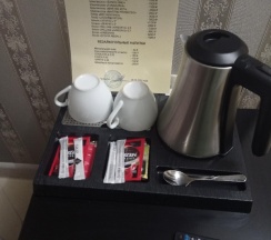 Хороший отель.Вежливый персонал на рецепшене.Номера чистые,ремонт свежий.Есть чайник,фен,халаты,тапочки.Вкусные завтраки.Парковка для машин.Рекомендую!