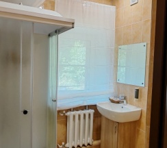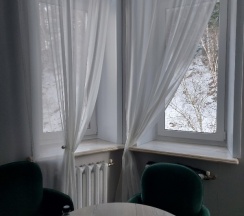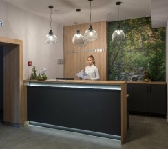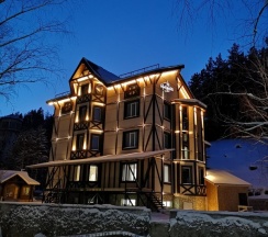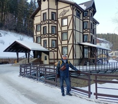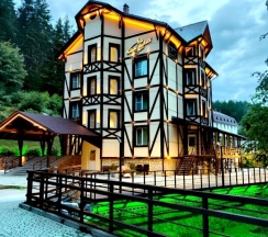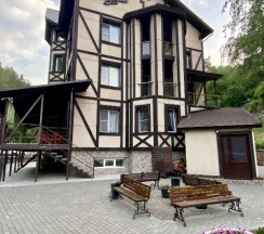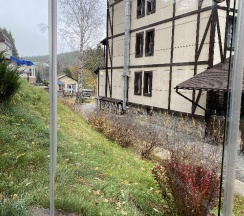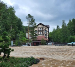 Мы с мужем отдыхали в этом отеле уже не первый раз. В этом году выбрали вторую половину июля. Номер забронировали ещё зимой, потому что хотели окна с видом на лес, и нам пошли навстречу, мы получили то, что хотели. Этот отель нравится нам тем, что находится в конце улицы Славского, на краю курортной зоны, поэтому здесь тихо, нет толпы, криков, музыки, транспортного шума, которые есть в центре. Дальше после отеля расположены только детский лагерь и терренкур "Старая мельница". Конечно, машины ездят и здесь, но гораздо меньше, чем возле санаториев. И ещё одна важная деталь, которая некоторым не нравится, но мы оценили её сполна: в отеле нельзя селиться с детьми младше 14 лет. Здесь удивительно тихо весь день: нет ни криков, ни капризов, ни скандалов.