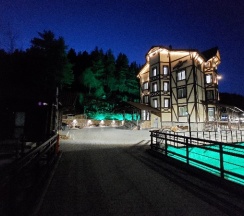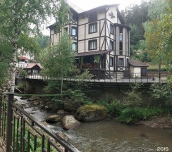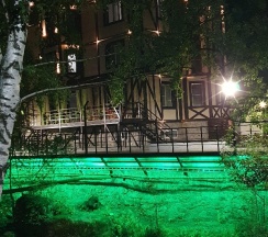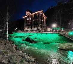 Отличный отель для перезагрузки на природе. Находиться в отдалении. Рядом горная река. Вечером подсветка. Создаётся впечатление что вы где-то в Швейцарии! Ну почти;). Ухоженная территория, рядом терренкур Старая мельница. Кафе тоже рядом. Номер уютный и современный. Завтраки очень разнообразные и вкусные. Есть кофе-машина. Варит только кофе. Молоко или сливки отдельно. Расслабиться на выходные лучший вариант в Белокурихе. Единственное, очень маленькая душевая. Мужчине было тесновато. Учитывайте при бронировании.
