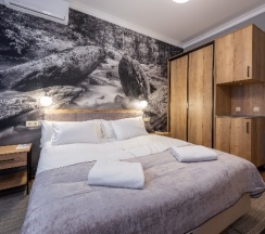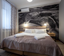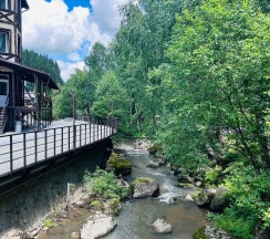Во-первых, отель имеет прекрасный вид на горы и речку. Номера уютные, красивые, современные. Персонал доброжелательный и отзывчивый. В отеле можно приятно провести время и качественно отдохнуть;)