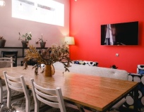 Приятное место, чтобы переночевать. Большая кухня с плитками, микроволновкой, термопотом, холодильниками. Есть телевизор на кухне.