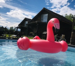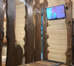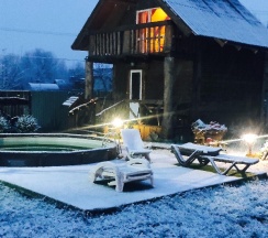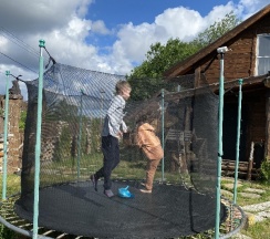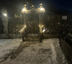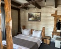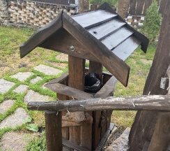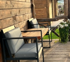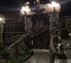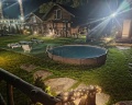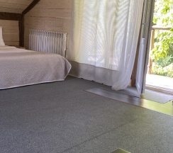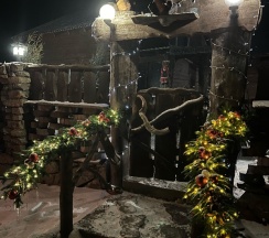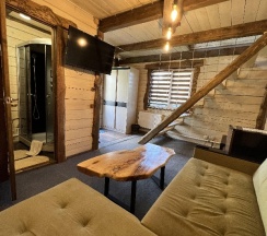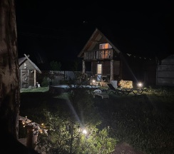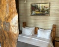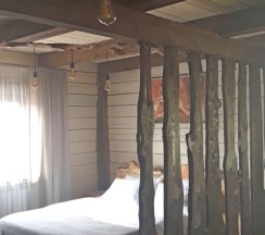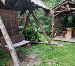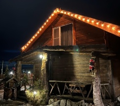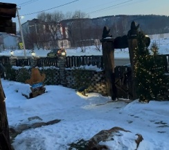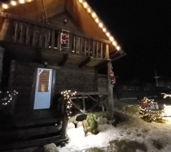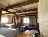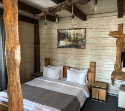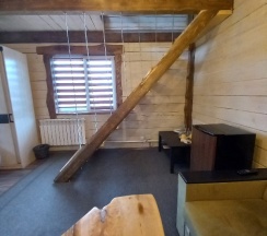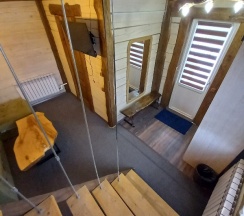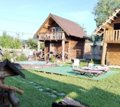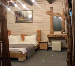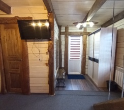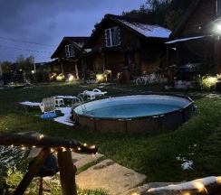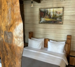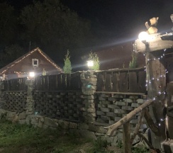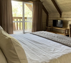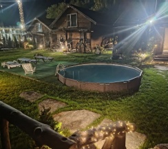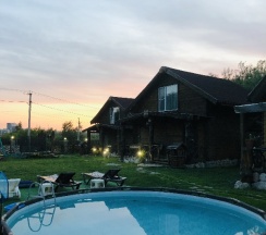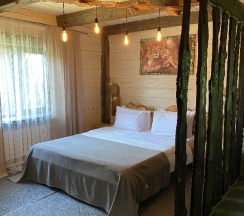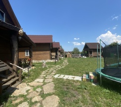 Отличные гостевые домики, все двух этажные. В доме есть всё что нужно: чайник вместе с чаем, посуда, телевизор, холодильник. На крыльце есть столик с двумя стульями. В туалете есть мыло, гель для душа, зубной набор и шампуни. На улице есть небольшой бассейн с прохладной водой, в жаркие дни спасает. Рядом с бассейном есть несколько лежаков, а для детей на территории базы расположены батут, две качели и игрушки. Стиль у базы необычный, лесной, в номере очень интересное освещение. В доме есть приятный аромат дерева. Кухня в отдельном здании. У каждого дома есть своя беседка с мангалом. Беседки располагаются на заднем дворе, а рядом проходит какой-то ручей. Хозяины вежливые, решат все проблемы. Также прошу подметить удобное расположение: рядом есть магазины и кафе. В общем, рекомендую.