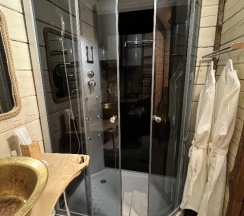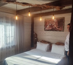 Добрый день! Очень хочется написать отзыв по той причине, что мы семьей отдохнули на все 100%. Впечатления были положительные у всех. Территория прилегающая огонь на столько все продуманно удобно ,уютно , комфортно. Мы чувствовали себя как дома. Домик заслуживает особой хвалы и внимания! Первоначально поразил дизайн все натуральное из дерева, со вкусом и комфортом. Сервис : одноразовая шампунь,гель д/ душа, щетка и зубная паста, кипельно- белые полотенца х/б, вафельные белоснежные халаты, белое чистейшее постельное белье. Все чистое. Имеется электрический чайник , чайные пары, столовые приборы, чай , салфетки, холодильник...На территории так же имеется баня, летняя кухня со всеми удобствами, мангальная зона👍👍👍🔥. Всем рекомендую обязательно съездить в это место и хочу сказать хозяевам спасибо за гостеприимство и хорошее отношение!