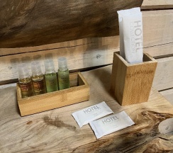 В каждом номере есть 2 комплекта посуды, полотенец, халатов, средств гигиены.