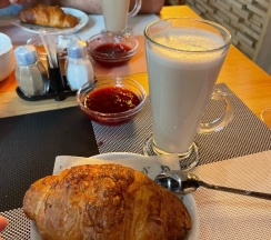 Очень милый отельчик. Есть завтраки, очень вкусная выпечка, можно и пообедать) Кофе, чай....все есть. Номера чистые, уютные. Советую всем!)