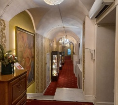 Гостиница достаточно большая, много номеров. Она оформлена в красивом историческом роскошном стиле. Быстрое заселение. Есть лифт, небольшая библиотека, зона коворкинга. На каждом этаже по несколько кулеров с водой. Внизу есть автомат с кофе.