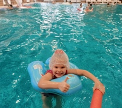 Потом мы посетели спа-центр. Какое большое здесь "море" (бассейн) - это мое первое впечатление. Здесь есть и горки, и маленький фонтан из воды, и можно плавать с кругом.