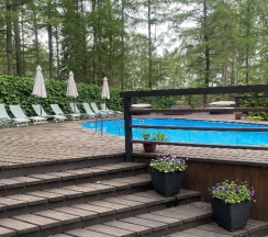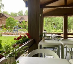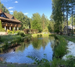 Здесь прекрасно все! Территория завораживает своей красотой: свежий воздух,высокие ели,сосны...Каждое пространство продумано по ландшафтному дизайну. Восторг!!!