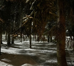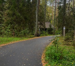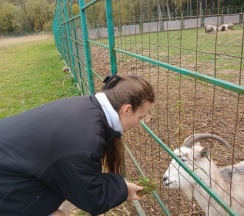 В лесу еще есть зоопарк, там живут медведь, кошка-рысь, олени, гуси, козочки, страусы, большие рыжие "коровы".