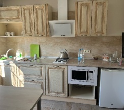 Есть общая кухня, мангальная зона, также есть зонты и лежаки для пляжа, два велосипеда для взрослых (все это бесплатно, за аренду платить не нужно! Удивительно и приятно!).