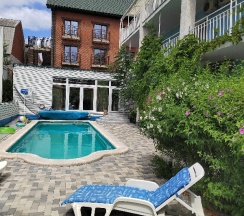 Уютный гостевой дом с прилегающей зелёной территорией. С классным теплым бассейном.🏖️ Внимательный отзывчивый👍 персонал. У хозяйки кухни Натальи, ну-Очень вкусная разнообразная кухня!..Горничная Елена всегда на посту, всегда отзовется и предоставит всё необходимое для удобства в номере. Администратору Владимиру огромное спасибо за всё, что делается для нас... Всем-летнего кайфа! Хороших беззаботных отпусков!