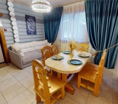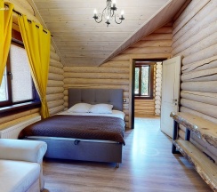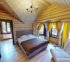 Уютный, комфортный двухэтажный коттедж со всеми удобствами и изысканным интерьером в стиле Кантри. Площадь дома – 140 м2, собственный внутренний двор . На первом этаже располагается гостиная с камином, мягкой мебелью и кухня, а также русская баня на дровах с бассейном. На втором – две спальни, оснащенные двуспальными кроватями и отдельными ванными комнатами, в каждой спальне кресло-кровать. Размещение 4 человека, возможно 5 дополнительных мест. На кухне холодильник, микроволновая печь, чайник, посуда, столовые приборы. Тапочки, полотенца для бани — входят в стоимость проживания. Бесплатный Wi-Fi, TV, теплые полы для дополнительного комфорта. В коттедже есть внутренний двор, где расположены мангальная зона и сибирский чан на костре, пользование чаном - дополнительная услуга, стоимость 6000 рублей. Можно для мероприятий, дневное пребывание 1000 руб. за одного гостя.