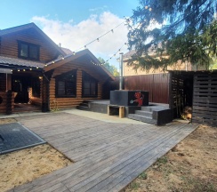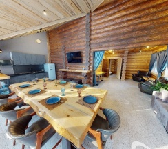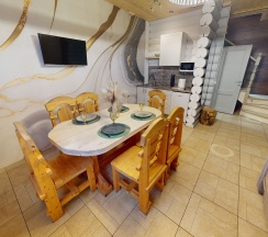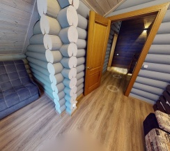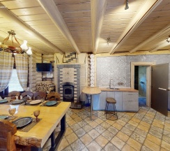 Комфортабельная вилла со всеми удобствами и изысканным интерьером в стиле кантри. Площадь виллы – 100 м2, собственный внутренний двор. На первом этаже гостиная 48м2 с большим обеденным столом, мягкой мебелью и мини-кухней, где можно провести мероприятие до 20 гостей, а также русская баня на дровах. На втором – две спальни с двуспальными кроватями, в каждой спальне кресло-кровать. Размещение 4 человека, возможно 4 дополнительных места. На кухне холодильник, микроволновая печь, чайник, посуда и столовые приборы. Полотенца для бани, тапочки входят в стоимость проживания. Бесплатный Wi-Fi, smart TV, теплые полы для дополнительного комфорта. Есть собственный внутренний двор, где расположены ледяная купель, чан на костре и мангальная зона. Пользование баней, купелью входит в стоимость проживания, пользование чаном - дополнительная услуга, стоимость 6000 рублей. Можно для мероприятий, дневное пребывание 1000 руб. за одного гостя.