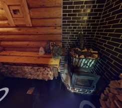 Наша гордость – 2 банные избы с русской баней на дровах. В распоряжении гостей — гостиная с камином, комната отдыха, банный чан на костре под открытым небом.