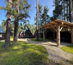 Понравилось: Очень хорошие домики, не тесно внутри. На территории есть ресторан, уличная терасса на берегу прудика, конюшня и кролики в отдельном уголке. Баня хорошая, внутри очень комфортно, есть холодная купель.