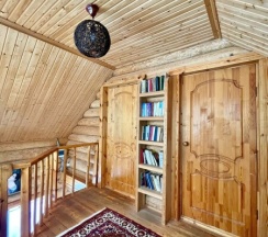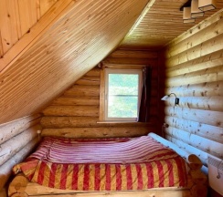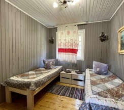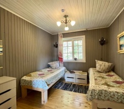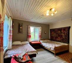 На первом этаже рядом с печкой место на двоих. На втором этаже две спальни (первая на две кровати, вторая одна большая двуспальная). В кориде еще одна кровать, но она только для лета (так как в коридоре прохладно).