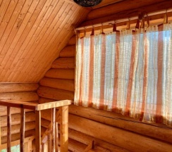 На первом этаже расположена кухня, наполненная теплым Карельским уютом со всеми удобствами, русская печь, большая кровать рядом с ней. На втором этаже имеется небольшой холл и две спальни. В одной комнате две двуспальные кровати и балкон с видом на лесную тропу, во второй двуспальная кровать евро размера, балкон с видом на речку. В доме есть санузел и прочие коммуникации.