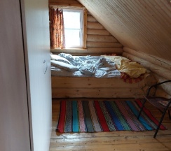 На первом этаже рядом с печкой место на двоих. На втором этаже две спальни (первая на две кровати, вторая одна большая двуспальная). В кориде еще одна кровать, но она только для лета (так как в коридоре прохладно).