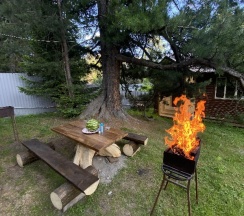 Шикарное место. Чисто, уютно, номера комфортные, просторные, с удобствами. Есть место для парковки. Полноценная кухня, место для костра. Всего 4 номера, поэтому тихо.