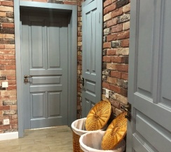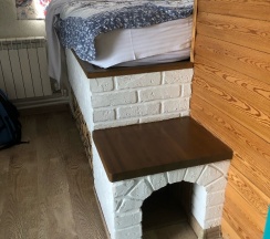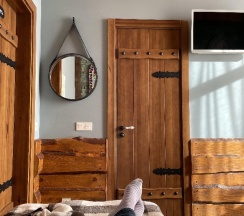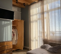 Номер небольшой, но уютный. В целом дизайн мини-отеля уютный, красивый. Есть окно и выход на общий балкон. Порадовало наличие халатов, тапочек и полного набора отельных ништяков от шампуня до губки для обуви😁 Матрас и подушки удобные, одеяло большое и есть ещё одно дополнительное. Есть электрический камин, включили любоваться👍🏻 Минус - было очень пыльно, летающую пыль было видно и даже глаза чесались🥲 При этом номер на вид был чистый.