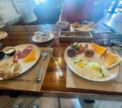 Завтрак нужно заказывать к определенному времени, мы пришли чуть раньше, завтрак был готов и уже холодный. Это печально, потому что завтрак вкусный.