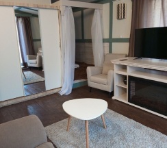 Не понравилось: Вода на кухне была отключена ( но это быстро включили), на 4-ж человек - всего 1 рулон туалетной бумаги ( но у нас все было с собой)