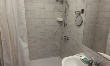 В душевой кабине плохо стекала вода. Слив был засорен. Поэтому приходилось стоять по щиколотку в воде.