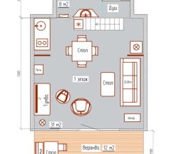 Балкон второго этажа и веранда подсвечиваются в вечернее время, здесь стоит уличная мебель, где можно попить чай, поесть шашлык и насладиться красивым закатом. Рядом с домом - большой крытый мангал. Наши необычные дома называют по-разному - афрейм, бунгало, треугольный дом. Как бы не называли - отдыхается в нем очень хорошо.