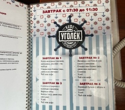 Завтрак в кафе также входит в стоимость , это не шведский стол, а меню из 5 завтраков . Мы выбрали яичницу с бутербродом и блинчиками с яблочным джемом , все вкусно, спасибо большое повару