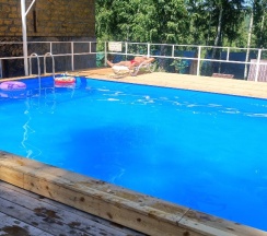 и чистый бассейн , что не мало важно.В этом уютном месте есть еще и банька она очень жаркая, и большая после которой можно нырнуть в бассейн. Вежливые и отзывчивые хозяева. Чистые и уютные номера с сан. Узлом и душем. Есть одно Но, приехали отдыхать две дамы которые с порога были недовольны облуживанием, администратор попросил разуться в холе, одна из них начала возмущаться, что она с грибком и не собирается этого делать. Дети бегают босиком, взрослые ходят босиком чистый ковровый пол. Хорошо, что они сьехали на следующий день и мы провели оставшиеся дни с полным заполнением отеля и приятными отдыхающими. Обязательно при едим на следующий год.
