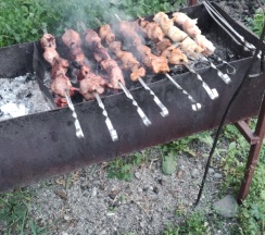 На беседке есть мангал, на котором можно приготовить мясо. Шампуры, решетка есть!