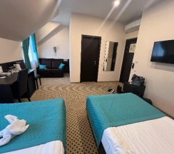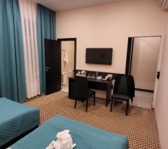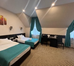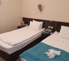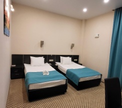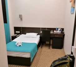 Останавливались в этом отеле на сутки. Брали двухместный стандарт. Всё очень понравилось. Чисто, тихо, в номере есть всё необходимое. Кровати широкие, матрасы в меру мягкие, удобные. В стоимость включен завтрак "шведский стол", тоже остались довольны. В общем всем рекомендуем данный отель.