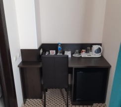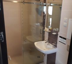 Могу ориентироваться на цену (менее 5 тыс за номер стандарт улучшенный с двумя кроватями) - за эти деньги я не ожидала увидеть то, что меня устроит полностью. Но номер оказался комфортным по площади, большой душ, что сейчас редко - много света, и, самое главное, чистота! Спасибо, что было ощущение чистоты во всем. Набор для душа был в полном комплекте, чайник, холодильник, сейф, даже тапочки хорошие, с плотной подошвой! Про халат не спрашивала, может быть его даже дали бы, но в номере не было. Выезжали рано, поэтому попросили завтрак собрать в ланч бокс с собой. Был бутерброд с овощами и зеленью (а не просто сухой), сырники со сметаной, стаканчик с пакетиком чая, бутылочка воды и яблоко. Мне даже добавить нечего, отлично)