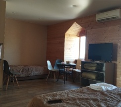 Не ожидал по цене "двухкамерного" номера за 2500,получить охрененные апартаменты с большим телевизором, холодильником и диваном+полноценная столовая до восьми. Респект хозяевам.