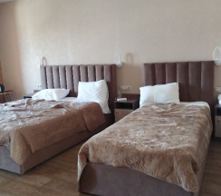 Были проездом в Волгограде, по отзывам забронировала номер. Если честно я оказалась в таком шоке … приятном! Оооочень все понравилось, номер брали на семью, были в 5-м. В номере 2 односпальные кровати и 1 двухспальная. Сам номер на последнем этаже. В номере все идеально чисто , чистые полы, свежая постель, ванная комната восторг( все настолько чисто ) , есть фен, столик, стулья, телевизор и кондиционер. Холодильник на этаже напротив двери был. На 2 этаже столовая, ребенку даже кашу приготовили, но гуляш мне лично не понравился, тк я в принципе очень привередлива к мясу, очень жирно было для меня. А так столовая тоже неплохая! В общем если бы можно было бы поставить 100 звезд, поставила бы ! Очень все чисто , уютно и красиво ! Однозначно рекомендую , цена смешная 5300 за ночь с 5 человек , а удобства на высоте, очень приятно удивили , если приедем в Волгоград еще, то точно остановимся снова у вас! Спасибо большое ❤️