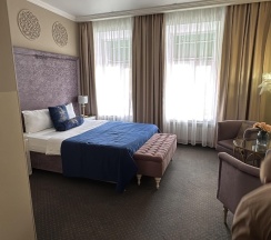 Отличный отель на центральной улице в пешей доступности ко всем достопримечательностям. Вежливый персонал, вкусные завтраки прямо в номер. Поздравление на день рождение, что очень было неожиданно и приятно🫶🏻 ❤️ Чистые номера, не считая пыли в труднодоступных местах: на вытяжке, за шкафом и на шкафу😃 . Все необходимое в номере есть (фен, чайник,холодильник, кондиционер, сейф, в коридоре гладильная доска и утюг). Не очень понравилось: слышимость между номеров и матрас не удобный)). Нам с ребенком предложили номер с видом во двор. Шум улицы и музыкантов совсем не был слышен (музыканты перестают играть в 22 часа👍🏼,но в заведениях музыка играет). Выехав с номера, вещи нам разрешили оставить в гостинице на хранение, пока будем гулять. Рядом с отелем есть крытая платная парковка, что очень удобно (800р сутки). Супер сервис, нам очень понравился🔥👍🏼