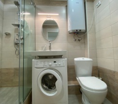 Кухонная зона: Кухонный гарнитур с вытяжкой, обеденная зона, кухонная утварь для приготовления пищи микроволновая печь, индукционная плита, холодильник, электрический чайник Спальная зона: две полутороспальные кровати, шкаф для хранения одежды, кондиционер, телевизор с функцией смарт ТВ, зеркало, новые постельные принадлежности (одеяло, подушки, комплект постельного белья), офисный стол и кресло Сан. узел: Душевая зона, раковина со смесителем, шкафчик с зеркалом, стиральная машина автомат, водонагреватель, комплект полотенец, Иные принадлежности: Утюг, посуда, гладильная доска, сушилка для белья.