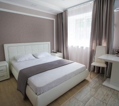Номер просто огромный, с кондеем, большой кроватью, холодильник, плита, рабочее место, парковка для авто, удобно добираться, 6000 тыс сутки, это плюсы. Минус - в момент нахождения, терминал для оплаты по безналу не работал. Так что налик наше всё!