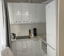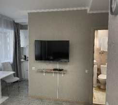 В номере есть холодильник,микроволновка, чайник, огромный телевизор.