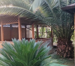 Довольно приличный гостевой дом, по сравнению с остальными, достался хороший номер, очень большой, 30 кв, улучшенный стандарт с балконом, номер 10, в главном корпусе, где администрация, территория зелёная, есть беседки, довольно чисто, чайник на этаже.