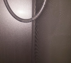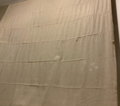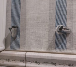 Часть гардины висит на верёвочке, привязана к другой гардине.