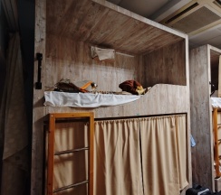 Были в хостеле Найс в начале июня 24г. Брали номер семейный: 2 обычных кровати и 2хярусная капсульная. Нас встретил приветливый администратор, все объяснил, показал. Народу было много: от китайских студентов до трудяг едущих в Южную Корею. Обстановка уютная, но столов иногда не хватает. Полотенце и постельное выдают. Есть 2 душа, стиральные машины, сушилки складные, фен. Можно самим готовить еду, есть все необходимое: индукционная плита, кастрюли, сковородки, вся необходимые столовые приборы.