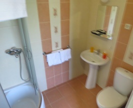 Комната оформлена в спокойных тонах с собственной ванной комнатой, оснащён кондиционером, холодильником и телевизором. В комнате двухспальная кровать.