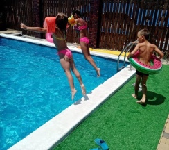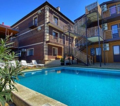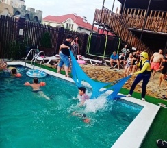 Отдыхали на ЧМ во многих местах. Это единственный дом, куда захотелось вернуться!!! Доброжелательность хозяек зашкаливает!!! Всегда помогут, всегда приветливы. Отдельно отмечу, что единственные хозяева, которые относятся к детям хорошо. Есть для деток детская площадка, игровая комната. Красивая кухня, веранда на первом и втором этажах. Двор аккуратный, красивый. Большой глубокий бассейн. Виды с нашего номера сказочные!!! Сам номер приятный, отделан деревом, приятно пахнет, уютный. Рядом с домом Магнит и Пятерочка. До пляжа прогуляться можно. Сама пишу и уже захотелось вернуться)))