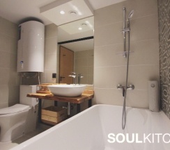 Тот самый случай, когда в жизни лучше, чем на фото. С комфортом разместились вчетвером! Понравилась чистота, огромное окно, удобное расположение и возможность зайти в любое время) Но учитывайте, что внизу есть бар из которого всю ночь играет музыка и в ванне хотелось бы шторку. Нам это не мешало отлично провести выходные – поэтому точно 5!