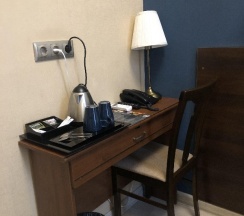 Очень чистый и просторный номер,вежливый персонал.Разбудили с утра,помогли вызвать такси.Можно заказать завтрак и обед.Вкусно.