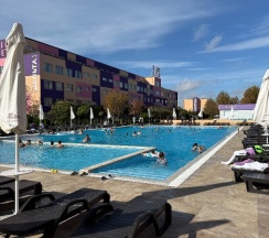 Бронироввли корпус Бетта, но заселили нас в новый корпус Альфа с потрясающим видом на бассейн. На территории 2 больших бассейна, в наш заезд они были с холодной водой. Зато работал подогреваемый крытый бассейн с выплывной чашей. Весь день проходят мероприятия как для детей, так и для взрослых. Мой сын любитель бильярда, практически не вылазил с бильярдной. Отдельное спасибо Злате из команды анимации.