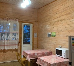 Номера на 3 персоны, в номерах кровати на 3-х человек (дополнительно возможно размещение четвертого человека - раскладушка), тумбочки, вешалки, столы, стулья, комод, балкон с видом на озеро в каждом номере, освещение, обогреватели (по необходимости), розетки. В корпусе размещается отдельная оборудованная кухня с газовыми плитами, электрическим чайником (доп.услуга), водопроводом, умывальником, посудой и необходимыми принадлежностями. Рядом с корпусом - душевые кабины и туалеты летнего использования - на улице в 20 метрах.