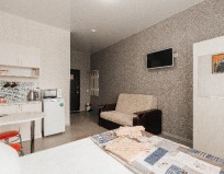Номер как однокомнатная квартира студия, чисто, уютно, есть все удобства. Персонал вежливый.