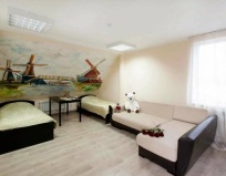 Приехали днем, номера остались только с двухъярусной кроватью. Сам отель на третьем этаже, идешь по стрелочкам.))) Заходишь, а там темень полная, только аквариум светится, проходишь на ощупь к стойке регистрации а там девушка сидит. Вышел какой то мужчина толи хозяин толи еще кто показал мне комнату. Дверь открылась не с первого раза, очень сильно заедал замок. Сама комната 3*4 примерно, кровать для подростков двухъярусная и маленький стол и стул и все. И за это 1800 рублей. Мы не решились на это. Сняли квартиру со всеми условиями через Авито за 3000.